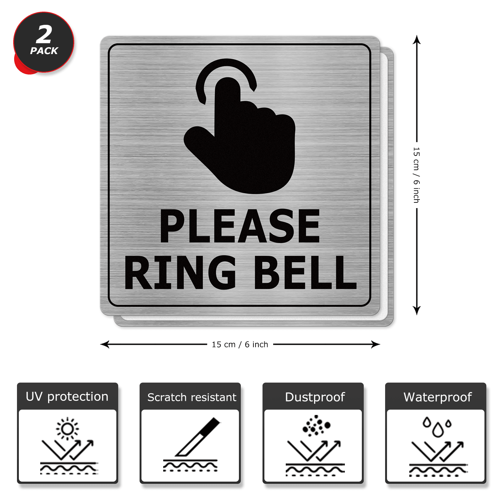 Package Includes:The sign measures 6 x 6 inches with 2 pieces included in the package. It can be well seen by visitors or deliverers.