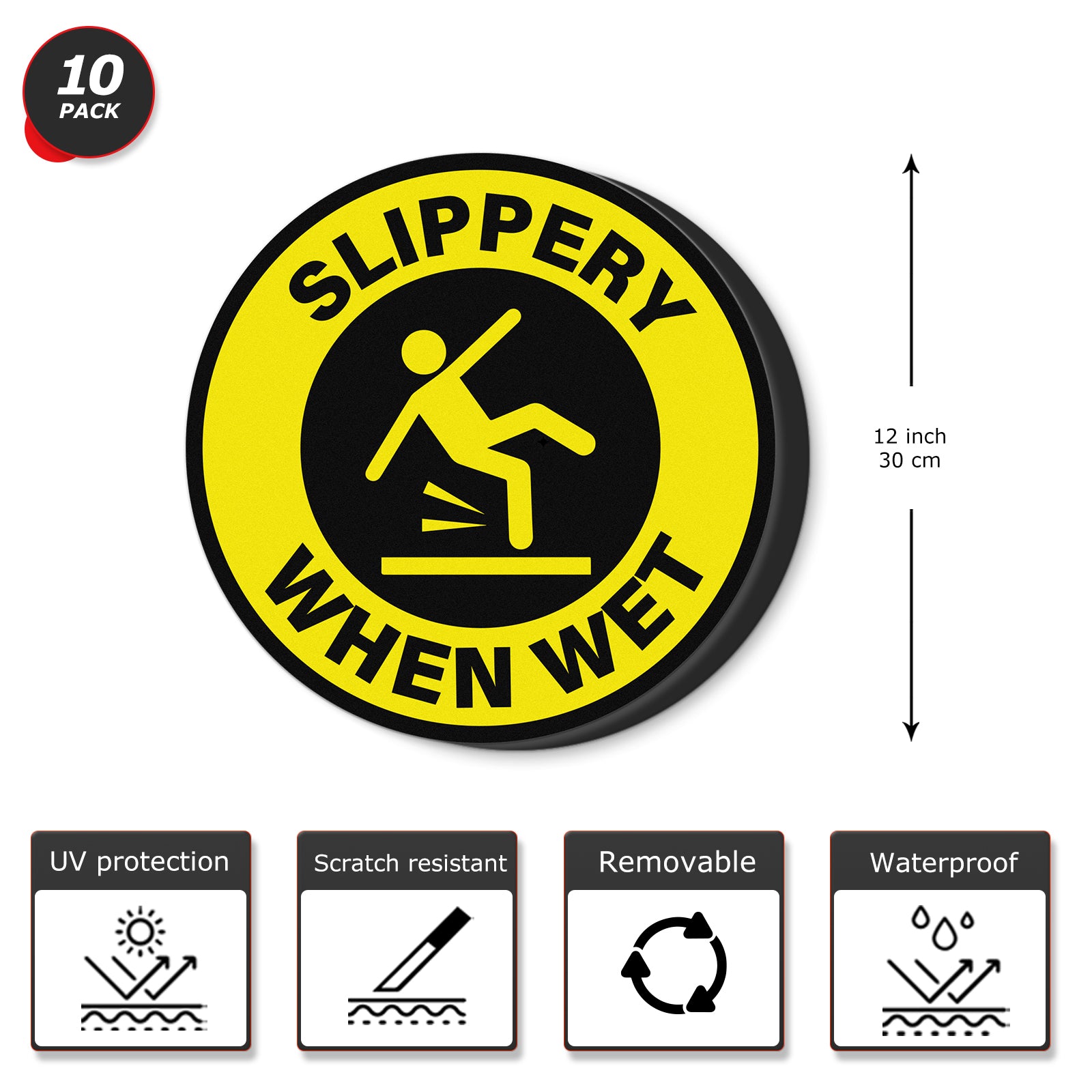 Package Includes: You will get 10 pieces with Slippery When Wet stickers.You could stick the safety sign on the places such as the wall, floor, glass, etc.
